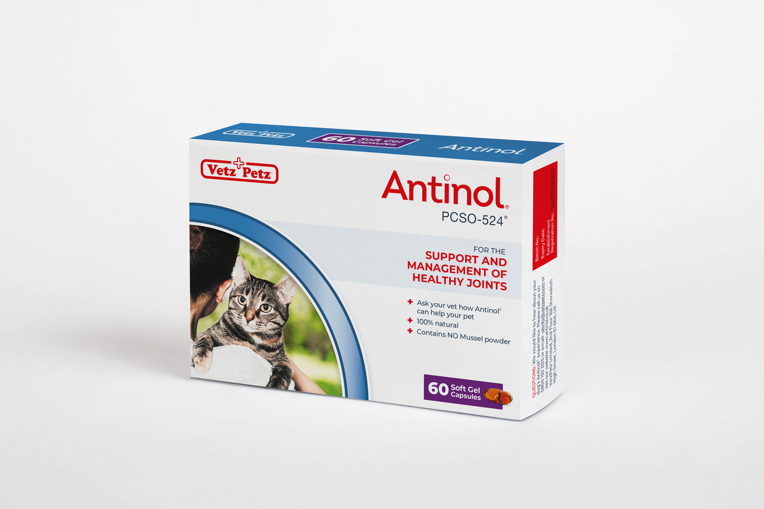 Antinol®️ aids joint health and supports day-to-day comfort and mobility for your cat. Containing a unique, sustainable, proprietary marine lipid concentrate – backed by world-class science, it is natural and safe for long-term use.